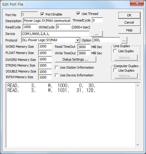 | <Figure 1> Read Schedule setting example of Power Logic SY/MAX communication driver |