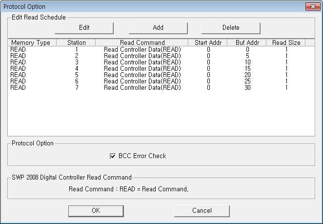 | <Figure 3> Example of SWP 2008 Digital Controller driver's read schedule Add/Edit dialog box |