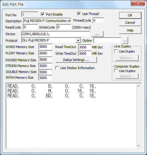 <Figure 1> is read setting example of Fuji MICRREX-F communication driver.
