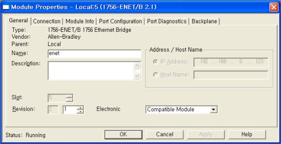 | <±×¸² 2> AB_LOGIX_5K Series Ethernet Åë½Å µå¶óÀ̹öÀÇ ¿É¼Ç ´ëÈ»óÀÚÀÇ ¿¹ |