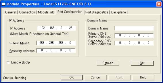 1) PORT : AB LOGIX 5000 Series Ethernet Åë½Å µå¶óÀ̺긦 ¼³Á¤ÇÑ PORT ¹øÈ£. ( 0 ~ 255 )