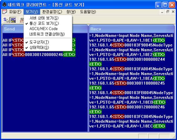 Åë½ÅÄÚµå º¸±â : ¼­¹ö¿Í Ŭ¶óÀÌ¾ðÆ® ½Ã½ºÅÛ°úÀÇ Åë½ÅÇÏ´Â Äڵ庸±â À©µµ¿ì¸¦ Ç¥½ÃÇϰųª ¼û±â´Â ¸Þ´º.