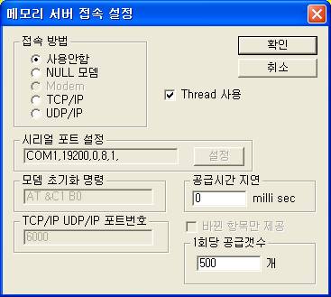Á¢¼Ó ¹æ¹ý : »ç¿ë¾ÈÇÔ, NULL ¸ðµ©( ½Ã¸®¾ó Åë½Å¼±·Î ÀÏ °æ¿ì ), TCP/IP, UDP/IP Áß¿¡¼ ¼³Á¤