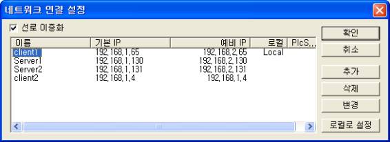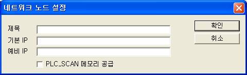 <±×¸² 1>ÀÇ  ¹öưÀ» ´©¸£¸é <±×¸² 2>ÀÇ ´ëÈ­»óÀÚ°¡ ³ªÅ¸³ª´Âµ¥ ¿©±â¿¡ ³ëµå Á¦¸ñ, ±âº» IP, ¿¹ºñ IP, PLC_SCAN ¸Þ¸ð¸® °ø±Þ¿©ºÎ¸¦ ¼³Á¤ÇÑ´Ù.