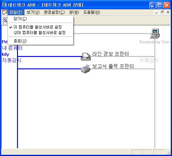 ÆÄÀÏ ¸Þ´º´Â ´Ý±â, ÀÌ ÄÄÇ»Å͸¦ Ȱ¼º¼¹ö·Î ¼³Á¤, »ó´ë ÄÄÇ»Å͸¦ Ȱ¼º¼¹ö·Î ¼³Á¤, Á¾·áÀÇ ºÎ ¸Þ´º°¡ ÀÖ´Ù.