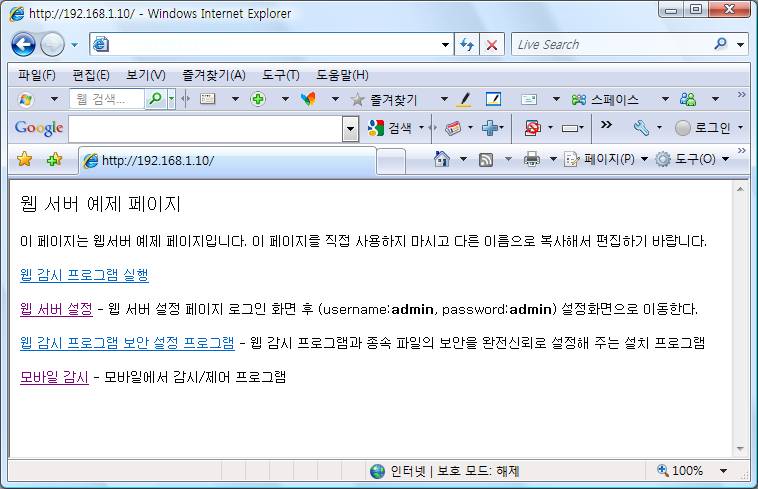 À¥ ¼­¹ö¸¦ ¼³Á¤ÇÑ IP ¶Ç´Â »çÀÌÆ®¸¦ ÀÎÅÍ³Ý ÀͽºÇ÷ξî·Î ¿­¸é <±×¸² 1>°ú °°Àº ÆäÀÌÁö°¡ ¿­¸°´Ù.