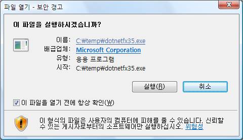 <±×¸² 1> Microsoft .NET Framework 3.5 ¼³Ä¡ È®ÀÎ ´ëÈ»óÀÚ