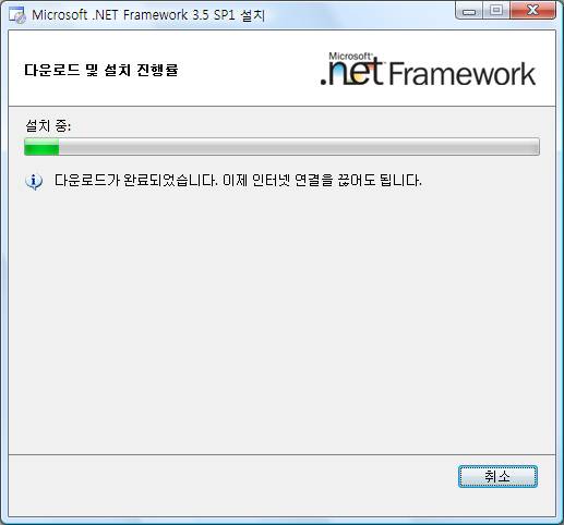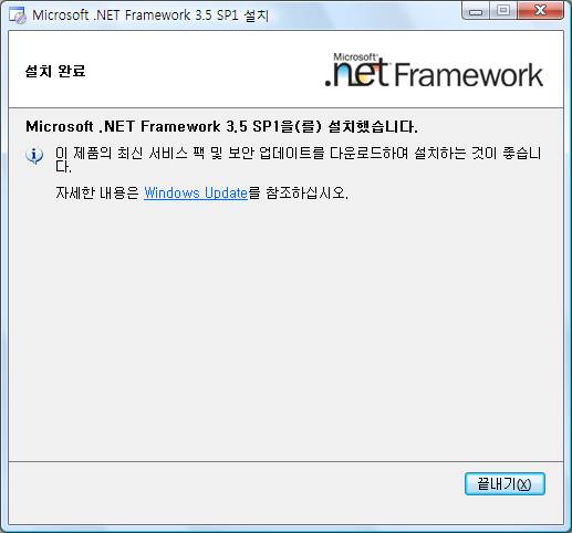 <±×¸² 4>´Â Microsoft .NET Framework 3.5 ¼³Ä¡°¡ ¿Ï·áµÇ¾ú´Ù´Â ¸Þ½ÃÁöÀÌ´Ù.
