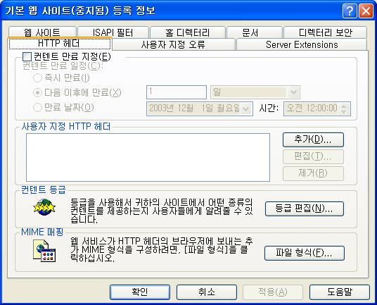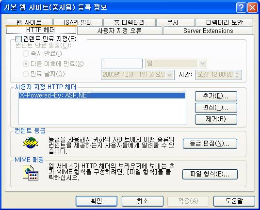 <±×¸² 1> À¥ »çÀÌÆ® µî·ÏÁ¤º¸ HTTP Çì´õ¿µ¿ª¿¡ ASP.NET°¡ µî·ÏµÇÁö ¾Ê´Â °æ¿ìÀÇ ´ëÈ»óÀÚ