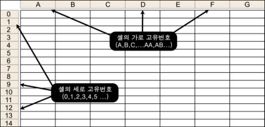 2) ¼¿ÀÇ °¡·Î¹øÈ£´Â A, B, C, D .... Z, AA, AB, AC.... ¼øÀ¸·Î ºÎ¿©µÈ´Ù.