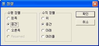 <±×¸² 1>¿¡¼ ¼öÆò Á¤·Ä(¿ÞÂÊ, Áß°£, ¿À¸¥ÂÊ) ¹× ¼öÁ÷ Á¤·Ä(À§, Áß°£, ¾Æ·¡, ¿©·¯ÁÙ) À§Ä¡¸¦ ¼³Á¤ÇÏ¸é ¼±ÅÃÇÑ ¼¿(Çϳª ¶Ç´Â ¿©·¯ °³)¿¡ Ç¥½ÃµÉ ±ÛÀÚ(¶Ç´Â ¼ýÀÚ µî)ÀÇ À§Ä¡¸¦ ¼³Á¤ÇÒ ¼ö ÀÖ´Ù.