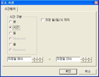 <±×¸² 1>ÀÇ ´ëÈ»óÀÚ¿¡¼ ½Ã°£ ±¸ºÐ(ºÐ, ½Ã°£, ÀÏ, ¿ù), ½ÃÀ۽ð£, Á¾·á½Ã°£, ÁöÁ¤ ¿ù/ÀϽà ±îÁö ¿©ºÎ µîÀ» ¼³Á¤ÇÏ¿© ¼¿ ½Ã°£À» º¯°æÇÒ ¼ö ÀÖ´Ù.