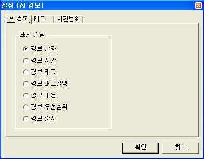 <±×¸² 1>ÀÇ AI/DI °æº¸, ű×, ½Ã°£¹üÀ§ ÅÇ¿¡¼ Ç¥½Ã Ä÷³, »ç¿ëÇÒ ÅÂ±×¿Í ½Ã°£¹üÀ§ µîÀ» º¯°æÇϰųª ¼³Á¤ÇÒ ¼ö ÀÖ´Ù.