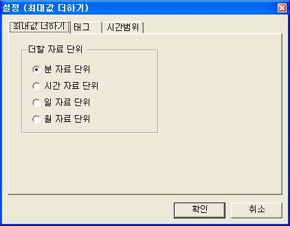 ÃÖ´ë°ª ´õÇϱâ´Â <±×¸² 2>ÀÇ ´ëÈ»óÀÚ¿¡¼ ´õÇÒ ÀÚ·á ´ÜÀ§¸¦ ºÐ, ½Ã°£, ÀÏ, ¿ù Áß¿¡¼ ¼±ÅÃÇÑ´Ù.