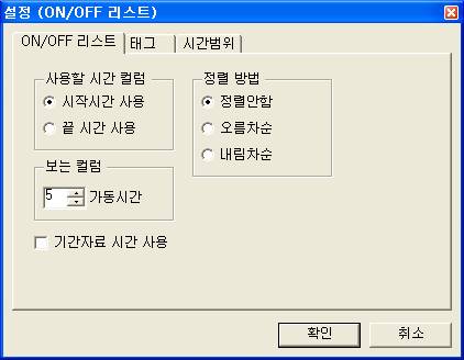 ±âº» ÀÚ·á ¿ä¼Ò »ðÀÔ ´ëÈ»óÀÚ¿¡¼ ¡®ON/OFF ¸®½ºÆ®¡¯¸¦ ¼±ÅÃÇϸé <±×¸² 2>¿Í °°Àº ¼³Á¤ ´ëÈ»óÀÚ°¡ ³ªÅ¸³´Ù.