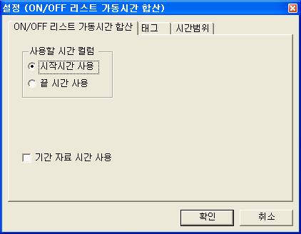 ±âº» ÀÚ·á ¿ä¼Ò »ðÀÔ ´ëÈ»óÀÚ¿¡¼ ¡®ON/OFF ¸®½ºÆ® °¡µ¿½Ã°£ ÇջꡯÀ» ¼±ÅÃÇϸé <±×¸² 2>¿Í °°Àº ¼³Á¤ ´ëÈ»óÀÚ°¡ ³ªÅ¸³´Ù.