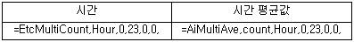 ¼¿ ¹®Àå ÆíÁý ¿¹) =EtcMultiCount,Hour,0,23,0,0,
