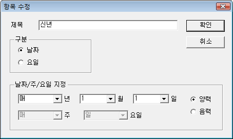 ¹öưÀ» ¼±ÅÃÇϸé <±×¸² 1>°ú °°Àº °øÈÞÀÏ(ƯÁ¤ÀÏ) ¼³Á¤