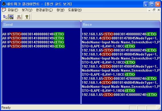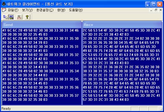 Åë½ÅÄÚµå º¸±â À©µµ¿ì´Â <±×¸² 1>, <±×¸² 2>¿Í °°ÀÌ ¼¹ö ¶Ç´Â Ŭ¶óÀÌ¾ðÆ® ½Ã½ºÅÛ°úÀÇ Åë½ÅÇÏ´Â ¸ðµç ÄÚµå ASCII/HEX ÇüÅ·Πº¼ ¼ö ÀÖ´Ù.